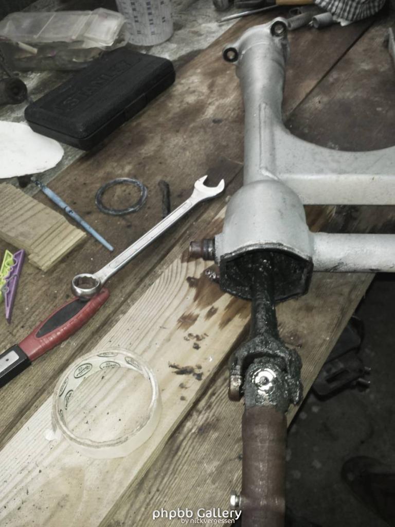 Après un examen de la bécane, l’arrière à déjà été tronçonné (oui, tronçonné ! ... j'ai d'ailleurs une largeur entre poutre de 220 au lieu des 230 mm indiqué dans la RT ?).