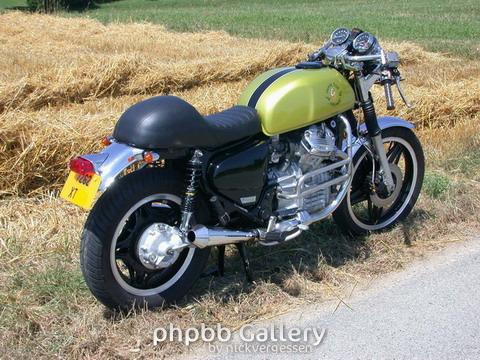 «L?idée m?est venue de mon attirance pour les Café-Racers en général. Les anglaises, j?avais donné une fois, c?est un nid d?empoisonnement mécanique. Le rêve était donc un beau Café Racer avec un moteur super fiable. » A l'origine, la meule est un Custom